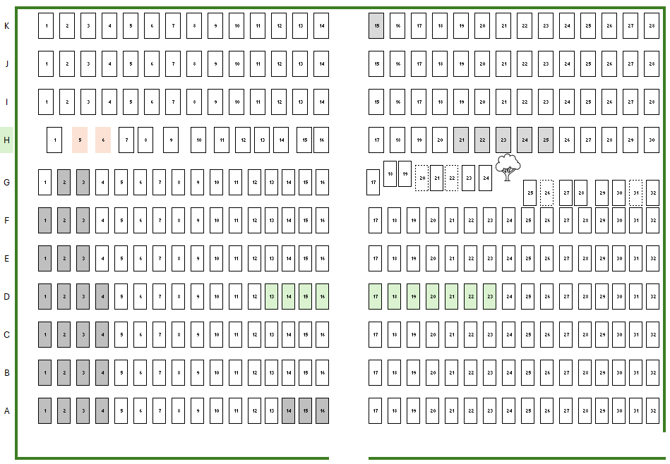 It should be noted that this map is not entirely to scale – the graves in row H and graves G17-32 are shown correctly spaced, but all others are shown as if the rows were exactly in line. Changes in the spacing used by the gravedigger means that there are no plots H2-4.